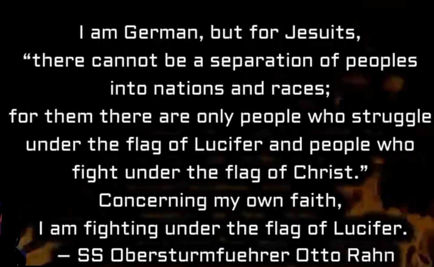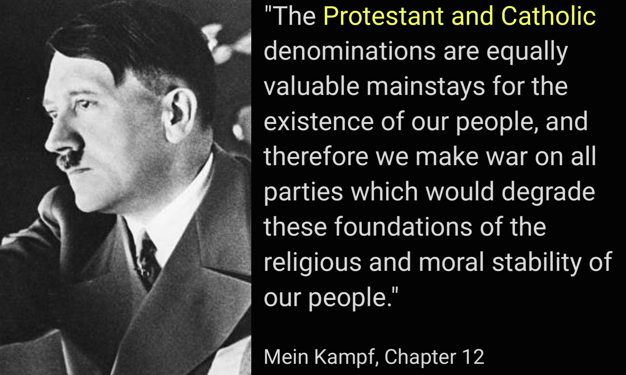 Hitler was clearly not a christian, but he wasn't foolish enough to say anything silly that would alienate them in a desperate time. He needed ALL of the german people on board for the massive task ahead of him. Something you guys should think about. If we don't find a way through this maddening age, there will not be a single white christian or pagan left on this planet. There will be nothing.