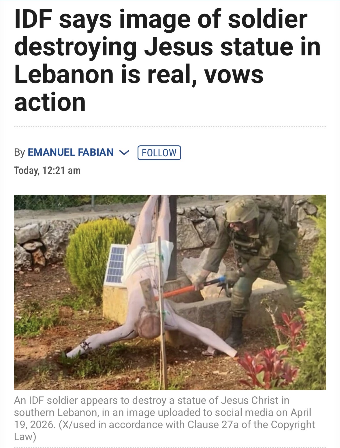 https://www.timesofisrael.com/liveblog_entry/idf-says-image-of-soldier-destroying-jesus-statue-in-lebanon-is-real-vows-action/>Trump depicts himself as Jesus>kills children >Hannity abandons Catholicism for Trump >now thisMIGA is literally satanic