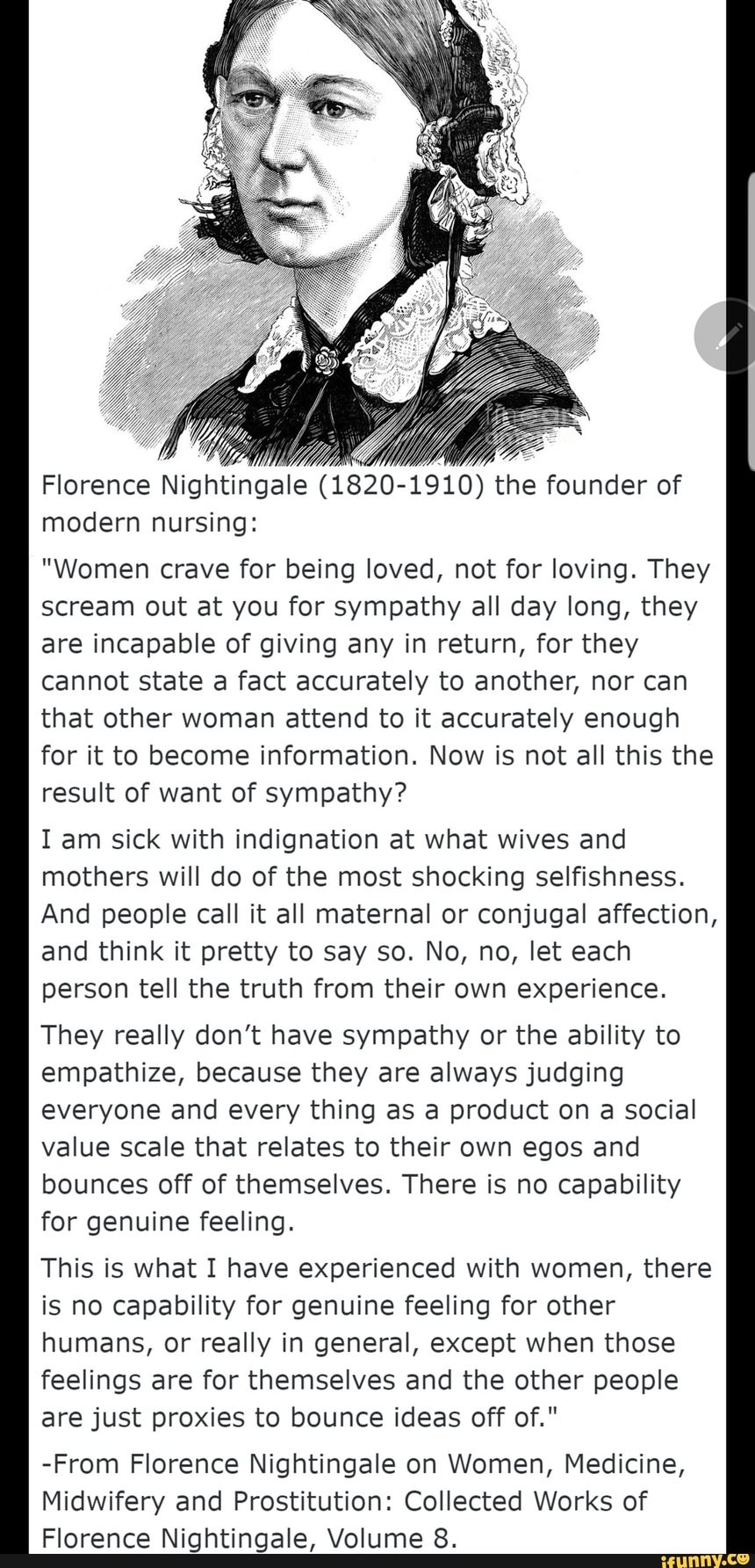 >>533498780women know women very well and they hate each other why don't we quote Florence Nightingale?