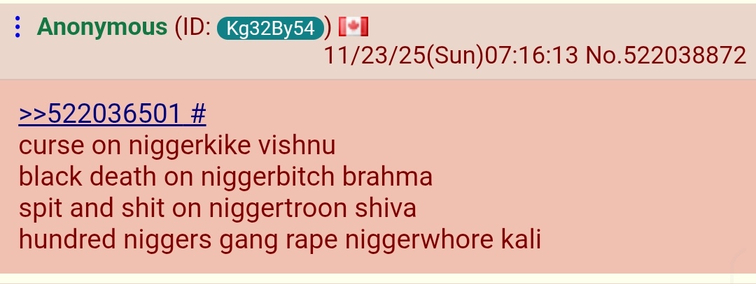 >>533500947>>533501002>>533500849See, this is the shit i'm talking about. Extreme, unnecessary, and unwarranted genocidal hatred of indians. You are dfukcing lunatics