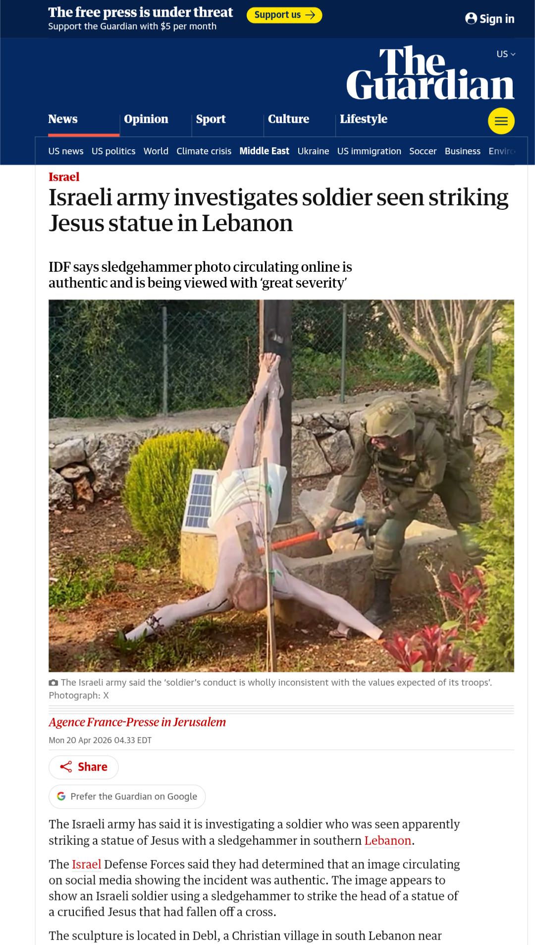 >>533504891>Israel investigates soldier on how he got caught striking Jesus statue in Lebanonftfy
