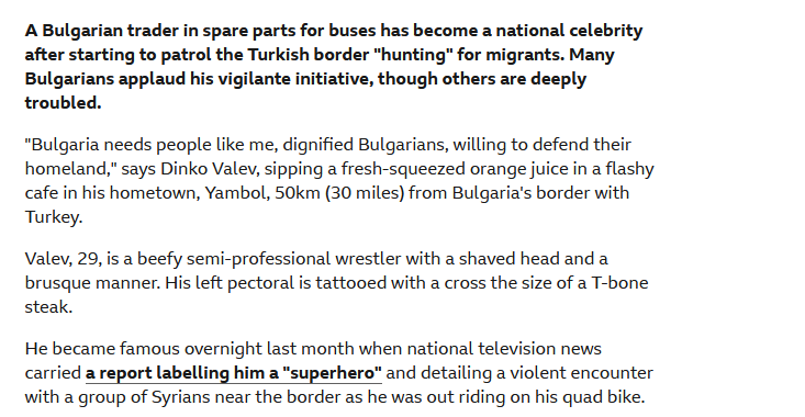 >>533511963and yes, you don't hear it, because it's politically incorrect, but our boys beat up migrants on the daily. Bulgaria is the shield of Europe, but it can only do so much.