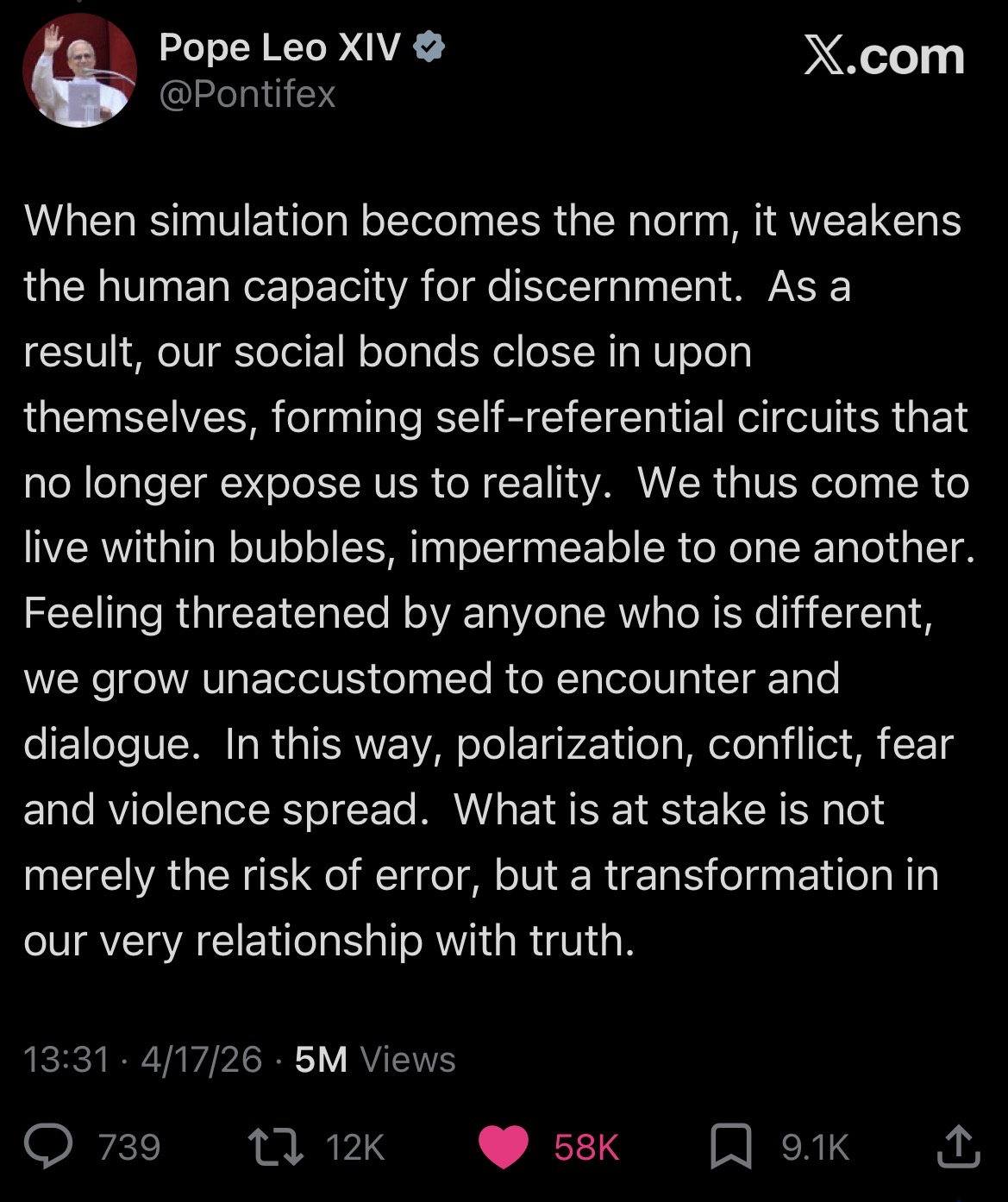 I REPEAT: POPE LEO IS BAUDRILLARD POSTINGhttps://x.com/pontifex/status/2045208460967518253?s=46