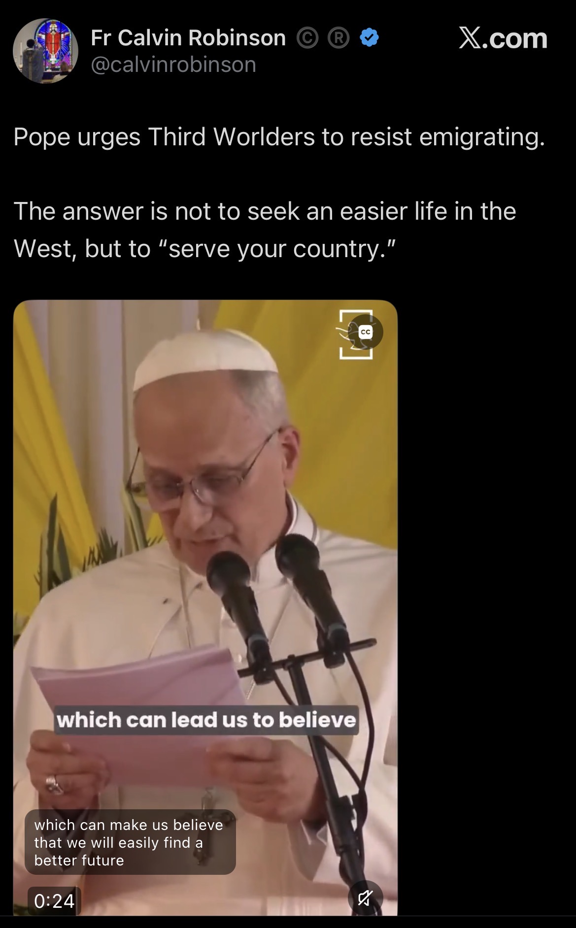 >>533511555The problem here is, 0 third worlders will be influenced by this, but when he says pro-migrant things to the west, the left eats it up.