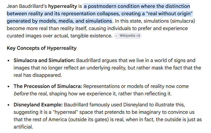 >>533511467EU glowposter is mad that real discussion is happening.It has been awhile since I read it. Hyperreality is one hundredpercent norm though now thanks to the Goybox in every house. Too lazy to research it again though. Read pic related says about it though for extra meta simulacra points KEK>literal simulacra of a human explaining simulacra and simulation is probably the most meta thing I have done in my life