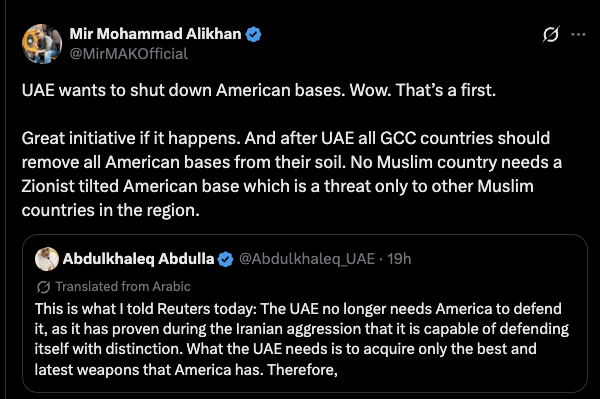 The trump Abraham accords are down the toilet and you've got gulf states looking to Turkey and Pakistan for defense.