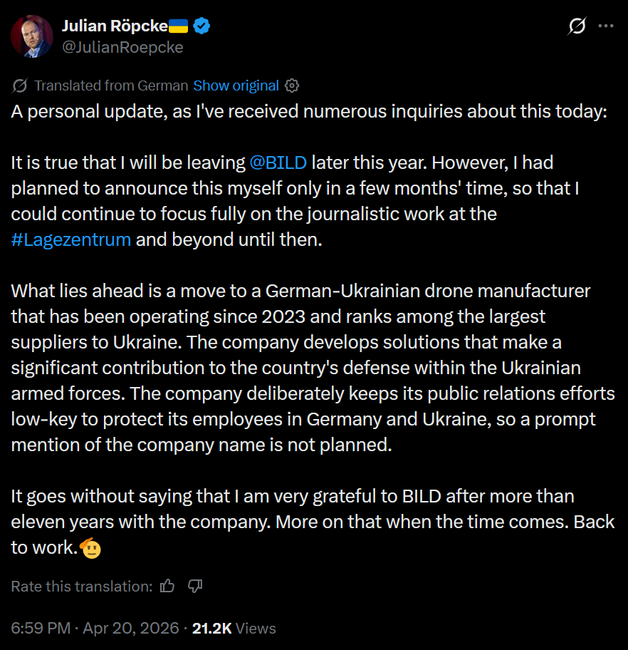 >German citizen living in Russia planned to deliver a BOMB to a law enforcement facility in Pyatigorsk on orders of Ukrainian handlers>FSB detained the woman, preventing the attack>Also arrested: a man who was supposed to detonate the bomb remotelyhttps://x.com/RT_com/status/2046133320568697129How long before Merz is asking Russia to release her?