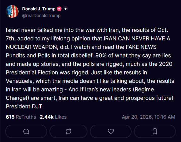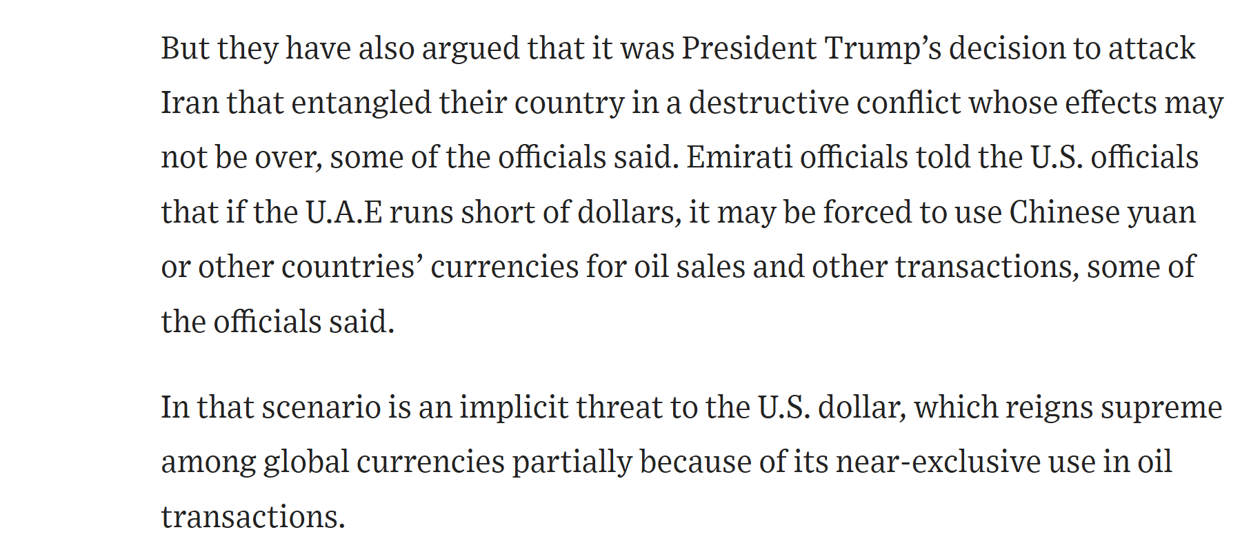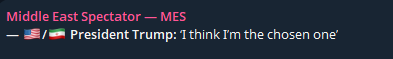 why is everyone so confused?The US started this war to stop the tighten the flow of oil.Tightening the flow of oil lets us loot the world. China will have to make a deal. Small countries will be bought outright. EU will have to sell us their last assets.The negotiations with Iran are irrelevant. We will never give them what they want.If China plays hardball, or does make a deal and pulls support but Iran spergs out and craters every refinery they can reach, oh well.We will just take what we want during the energy war that follows(a meat-grinder for all countries to dump their economically unattractive populations into is just a bonus)