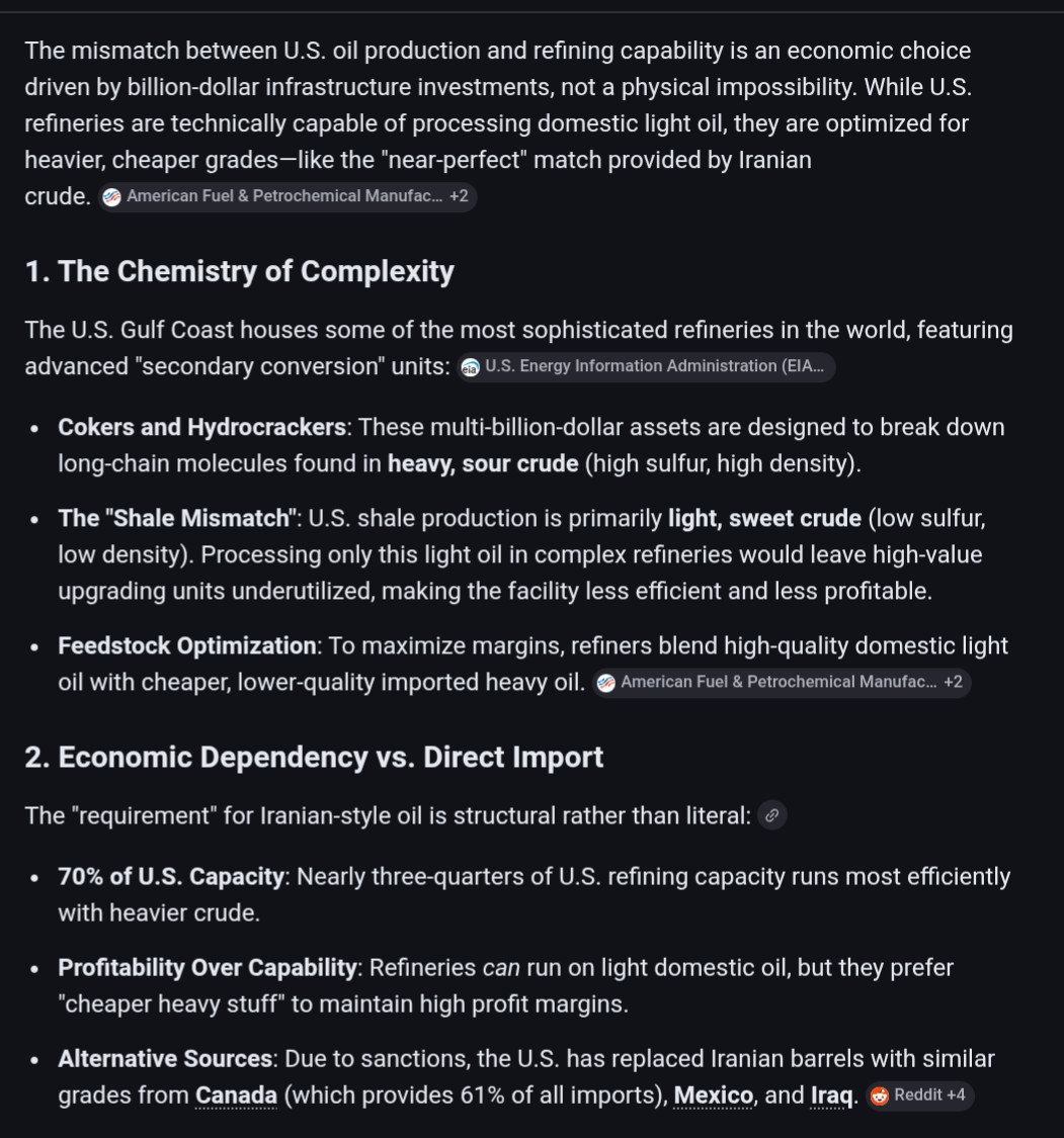 >>533516479We import crude to refine and sell those products globally. None of the crude we import comes from the Hormussy. Our refineries will continue to import crude and sell their products.