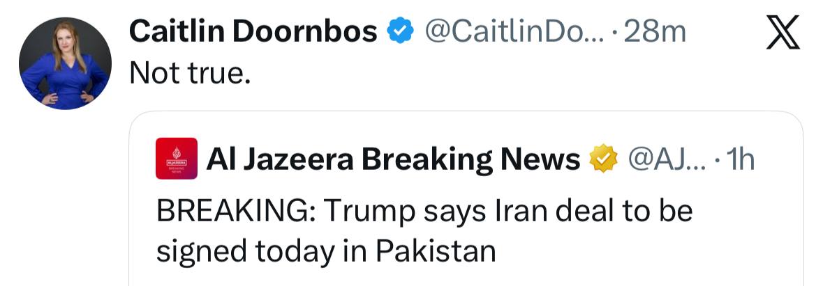 >— / Caitlin Doornbos, foreign policy correspondent for the New York Post: ‘Not true’@Middle_East_Spectator