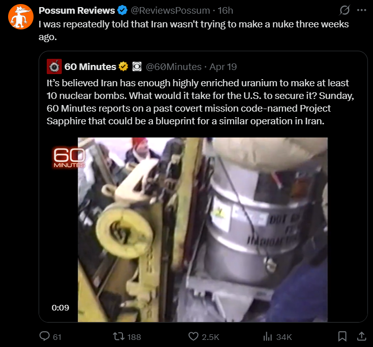 And then bomb Tel Aviv. Or, maybe start with Tel Aviv and then bomb Iran, I don't care.