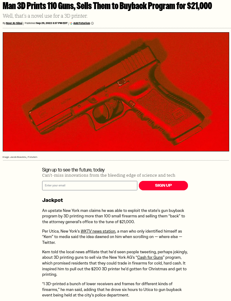 Multiple states are now trying to ban CNC entirely (including 3D printers) because they're afraid of the same kind of reprisal.