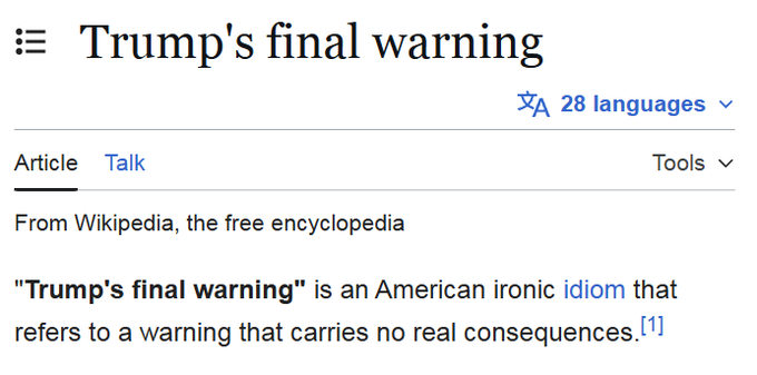 He's going to announce 48-hour ultimatum in full caps on his twitter followed by a two weeks peace talks.Nothing is going to happen, americans have 2nd amendment but they wont do shit either.