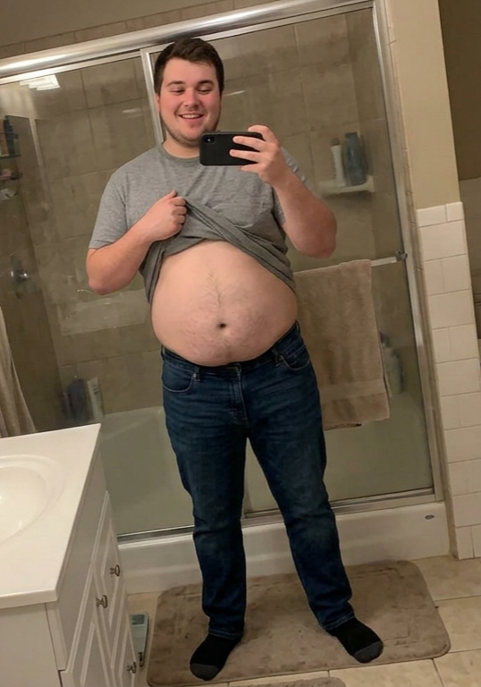 I personally think that his fat is rather equally distributed and is more like a layer and not sitting in the stomach. Despite lacking muscle mass i assume such guys would rather look good with a bit of diet.