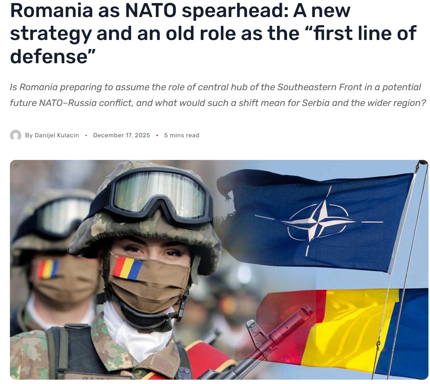 >>533553958ROMANIA IS A FORTRESS SECOND ONLY TO POLAND ITS THE NATO FRONTLINE BALTS ARE THE TRIPWIRE BUT MONKEYMAN HASNT GRABBED THEIR BANAN YET
