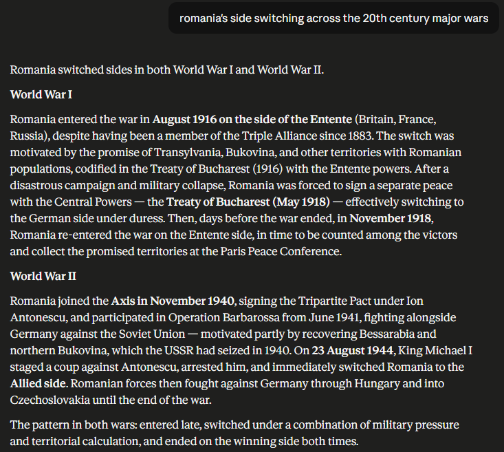 >>533553958There's one thing for which you can rely on Romanians in a war: their loyalty is proportional to your advantage, thus making it the single best indicator on who's winning. Like a boomer's weak joints picking up signals from atmospheric pressure changes before a storm, shifts in the tides of war resonate in Romanians. A tactical retreat in a secondary theater, a severed supply line, even the smallest blunder like a gun jamming during a POW execution will be reflected in the collective loyalty of Romanians. Of course you have to be careful when making decisions based on Romanian loyalty, since there's often a considerable lag between the moment it changes and when it manifest in actions. So if you gained the upper hand in battle, but still see them dragging their feet, do not become discouraged. Conversely if they switched sides, you are probably closer to defeat than you had hoped.