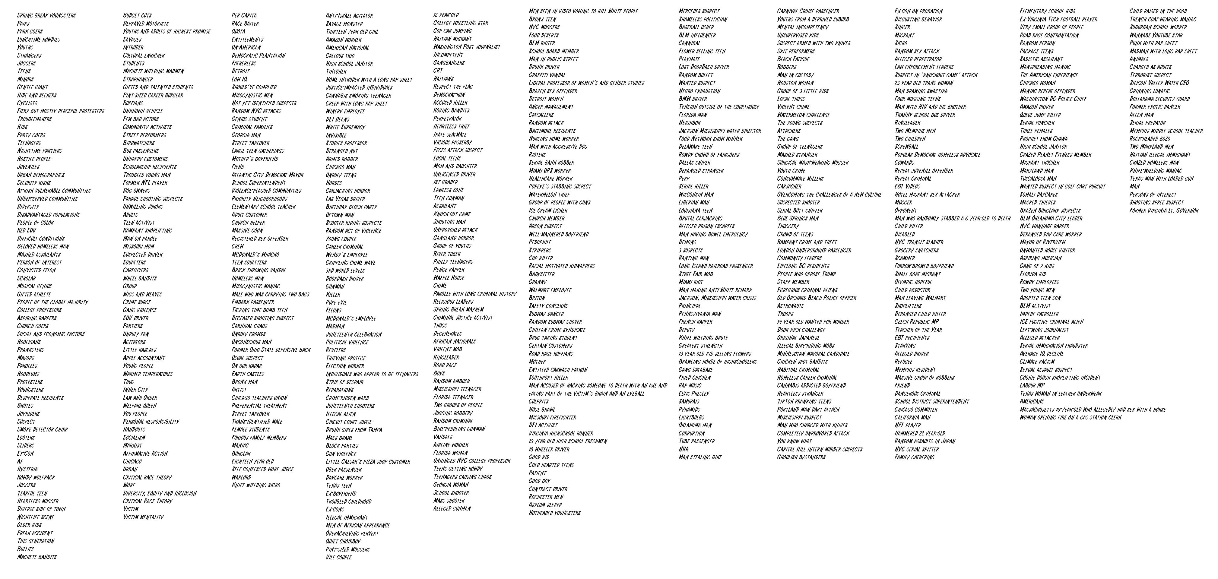 >>533561402They're all added as I find them in the wild. When I started I never thought it would grow that big and if I spent any more time here it would probably be twice as long as it is now.