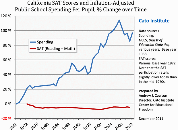 >>533560935>at the most extreme end of indoctrination, you have mkultraso you can tie someone to a chair and beat them with electrical cords and force feed them LSD and it makes them mentally unstable.similarly you can hit someone with a hammer and give them brain damage.but it doesn't follow from being easily able to destroy someone's mind that you can make them much smarter thru intervention, nor that it would be even worth doing if it did work.>youre disproving that spending has a meaning yourself and its all about the quality of teachers with that graphI'm showing that spending doesn't work. It's not the best example, but obviously it is correlated with reduced class sizes and would attract higher human capital and all manner of things that are commonly thought to increase gradess, but it does not improve grades.>it's all about the qualityblack reasoning at work, folks.just because spending doesn't improve grades, it doesn't follow that quality of teachers improves grades.