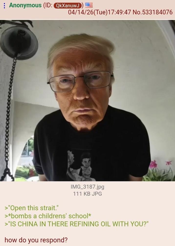 >>533568600>GEG i cant get enough of this.https://x.com/fflitzer/status/2042812900960551068I was fucking crylaughing at that ^, unironically. Like actual tears.