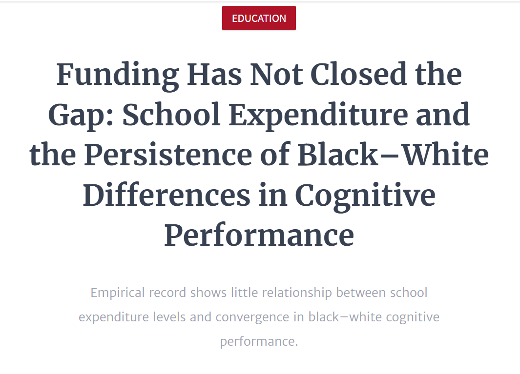 The funny thing is leftists will just say that's evidence we aren't throwing away enough money on niggers. It might take 5x higher nigger school budgets to dismantle the white supremacy holding back all-black schools. It can't have anything to do with the fact that Shaniqua can't help her keeids with 1st grade math and tells them school be fo raycis crakkkas anyway.