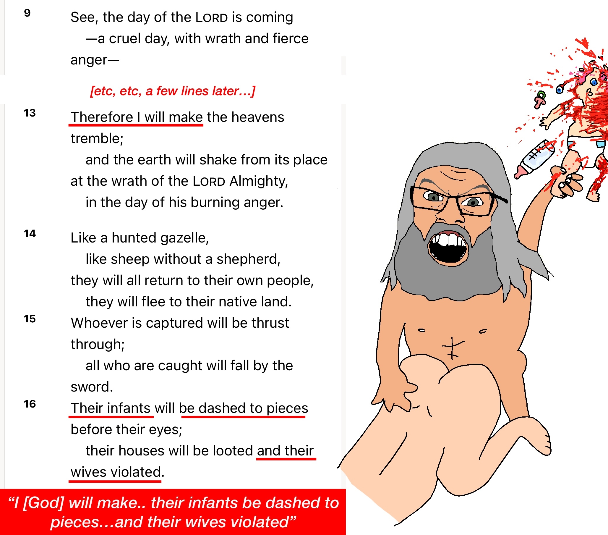 >URR Abraham, i have all these promises for you. I promise you descendants as numerous as the stars. Then watch me RAPE & DASH them!