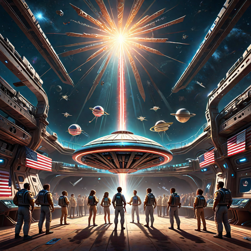 Somewhere, near a distant star, after floating at .65 Light Speed for 100 years, a Colony Ship 53 gathers in the viewing decks late at night to celebrate the 4th of July...