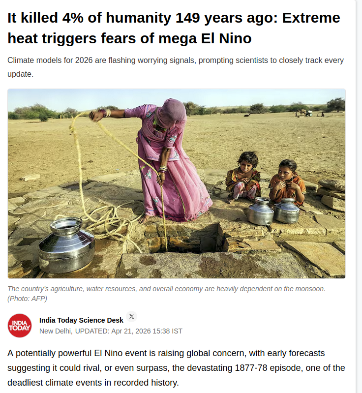 MASS STARVATION EVENT!This year is an El Nino event but not just any El Nino it is a MEGA El Nino monsoon season, the last time this happened nearly 5% of the planets population starved to death!These days with the reliance on fertilizers that number could be an order magnitude higher!