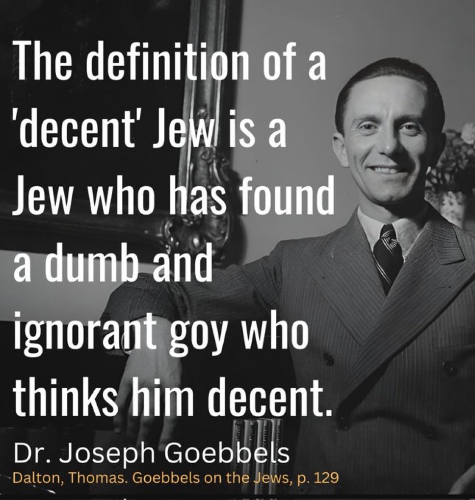 >>533599837No it doesn't. They still want to eradicate all white people, burn all idolators, and enslave the remainders for all of eternity, while pretending to be our chums and benefactors.The difference between an "innocent" Jew and a guilty Jew is merely opportunity, ability, and knowledge. The only truly GOOD Jew is an anticommunist ex-Jew ostracised and hated by his own people, and they're veritable unicorns.