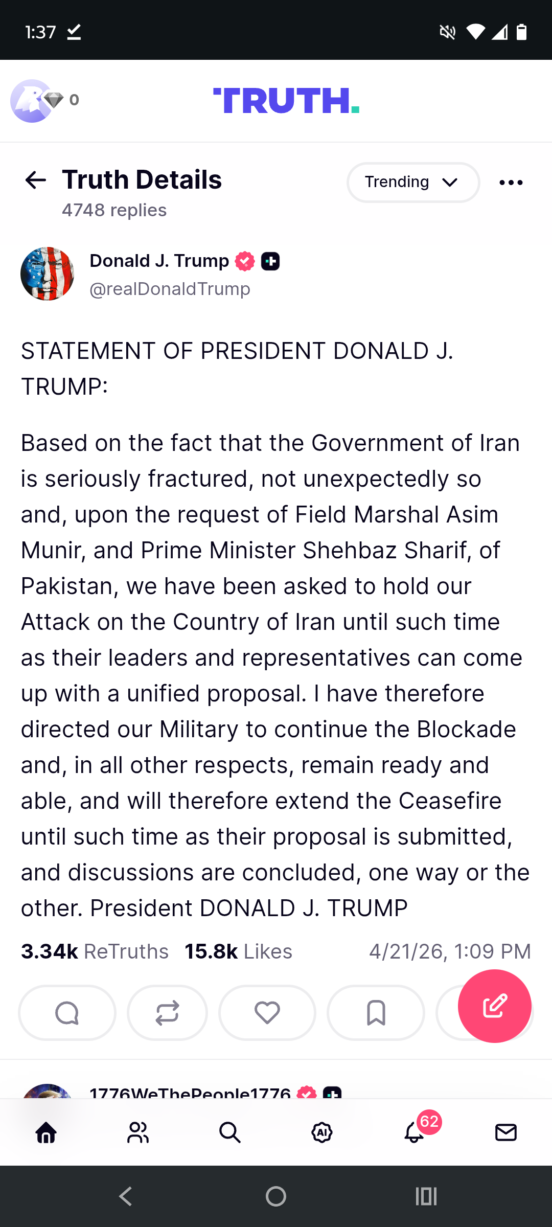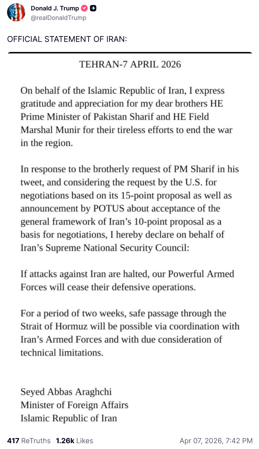 both sides are cucking. this war is over..."Prime Minister Shehbaz Sharif of Pakistan, who has assiduously courted the White House and sought to mediate peace talks between the United States and Iran, thanked President Trump for “graciously accepting our request to extend the ceasefire to allow ongoing diplomatic efforts to take their course.”" -- NYT