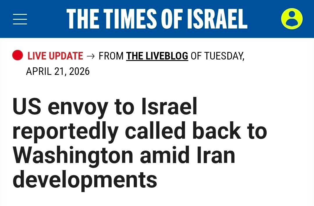 BREAKING: U.S. Ambassador to Israel Mike Huckabee has been recalled to Washington D.C. for urgent discussions on the Iran situation, Israeli Channel 12 reports.The report comes as US President Donald Trump announces an extension of the temporary ceasefire with Iran.