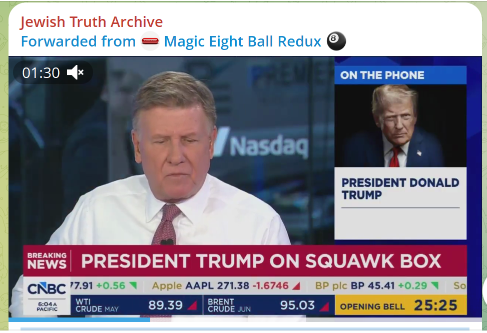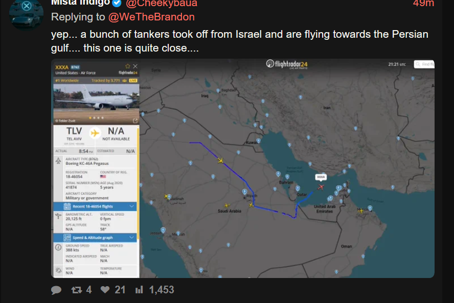 Previous >>533601312Day: 13 of the 14-day Ceasefire™ period in IranDay: 51 of the 1-day Special Military Operation™ to decapitate IranDay: 4 of the 10-day Ceasefire™ in Lebanon▶RECENT:>Trump extends ceasefire indefinitely >Iran threatens to completely close Strait of Hormuz>Iran: Won't send delegates to negotiate till US removes navy blockade>Yemen Houthis: Even if the US-Iran ceasefire holds, the larger war will likely continue>POTUS: US forces are “ready to go, militarily” back to war with Iran if no deal is reached by the end of the ceasefire>POTUS: Operation Midnight Hammer was a complete and total obliteration of the Nuclear Dust sites in Iran. Therefore, digging it out will be a long and difficult process>Haley: Touska headed from China to Iran and is linked to chemical shipments for missiles>Iran warns it has 'new cards' if fighting resumes>US Navy destroyer USS Spruance intercepted Iranian-flagged ship TOUSKA in Gulf of Oman. Vessel in US custody>POTUS: "If Iran doesn’t accept the deal, the entire country is getting blown up"▶WARNING:>Do not trust any "happenings" without link/proof▶Oil:>https://oilprice.com/oil-price-charts▶Kino:https://files.catbox.moe/og2wvv.mp4https://files.catbox.moe/dqr3fl.mp4https://files.catbox.moe/jg9rat.mp4https://files.catbox.moe/fx86zj.mp4https://files.catbox.moe/cbd7ug.mp4https://files.catbox.moe/2hwzcx.mp4https://files.catbox.moe/smmsfw.mp4https://files.catbox.moe/x0fbgv.mp4https://files.catbox.moe/86yxn2.mp4▶Live-streams:https://www.youtube.com/watch?v=4E-iFtUM2kk https://www.youtube.com/watch?v=TdcrT5OcS9c https://www.youtube.com/watch?v=53G-Oy4r6M4 ▶Telegram Channelshttps://rentry.org/tgnews▶Israel Rocket Alertshttps://www.tzevaadom.co.il/en▶Air Traffichttps://www.flightradar24.comhttps://flightaware.com/livehttps://globe.adsbexchange.com▶Maritime Traffichttps://www.marinetraffic.comhttps://www.vesselfinder.com