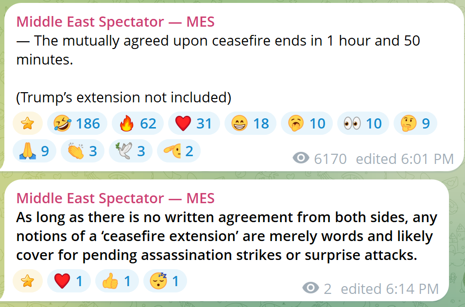 By the way if the ceasefire has expired why would Iran honor it