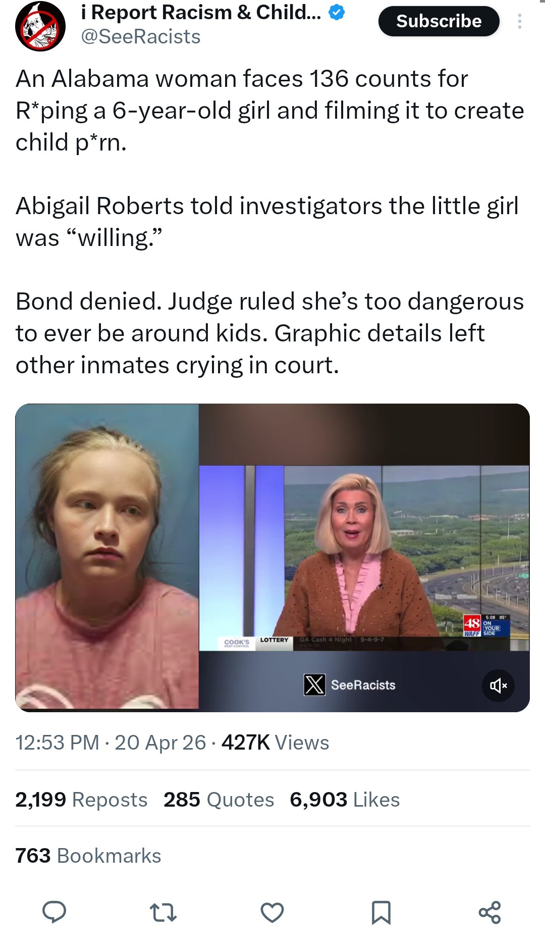 Women out privilege male children in society and they know it. This dumb bitch touched a higher privileged life form (little girl) which means she's fucked, and finally gets treated without her woman privilege by the public and courts. The only way a woman ever fucks up is if she messes with none excommunicated jews (like Harvey) or young girls. All the female teachers fucking 11 year old niggers don't see the inside of a cell, they just get community service, or parole within a week.