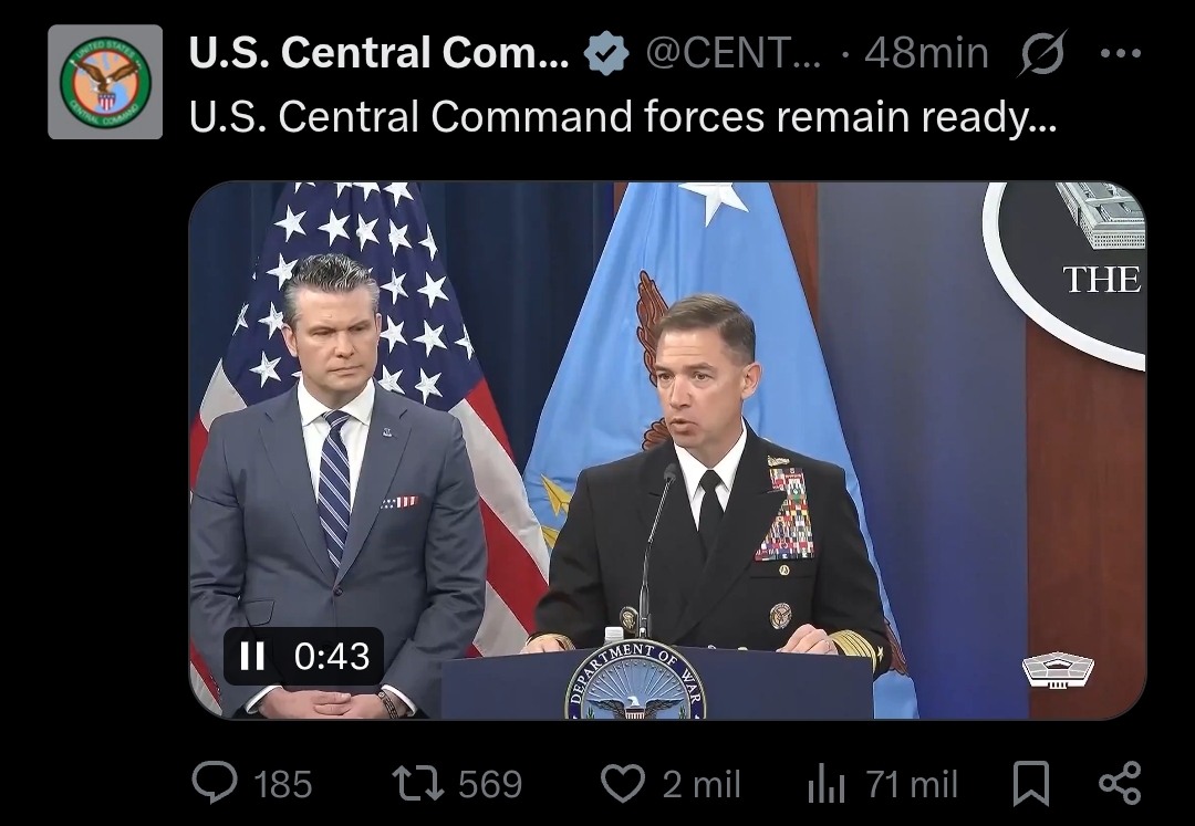 >POTUS: US forces are “ready to go, militarily” back to war with Iran if no deal is reached by the end of the ceasefire