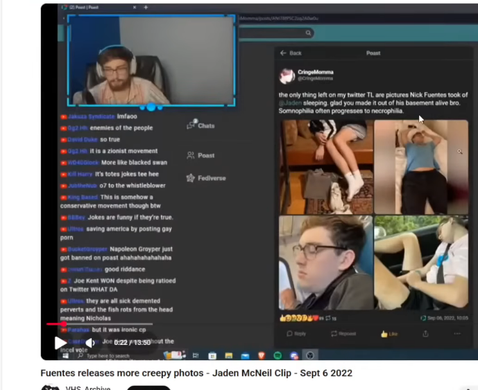 >>533618815Probably too busy taking pictures of sleeping men.>>533618871No because his takes are low IQ and inconsistent.Whatever he says today, he will 180 on it tomorrow.Just in your gay 2 minute clip he was talking to LeafyTheQueer about the "holocaust" being real and how the jews need to stop it with concepts from Open Society. Going by this logic, he makes every white nationalist look like fucking genocidal maniacs in the eyes of normies.Nick already said the holocaust never happened long before that clip in particular.Normgroids don't understand the holohoax never fucking happened, but Nick is "ourguy" and supposed to, and yet he says that it did happen. So what does that make him?A fucking liar. He's just repacking other rhetoric in a lazy sloppy way.He's like Orange Nigger but without a presidency or twitter and grifting off a podcast instead.TOTAL GRIFTER DEATH.