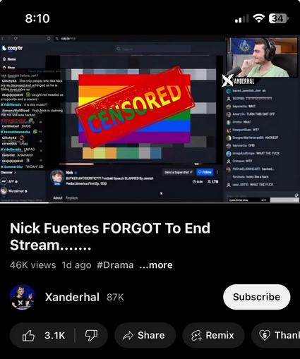 >>533619680Its really not that hard to google "nick fuentes gay" and post the results here schlomo.The goyim aren't all retarded, you know.