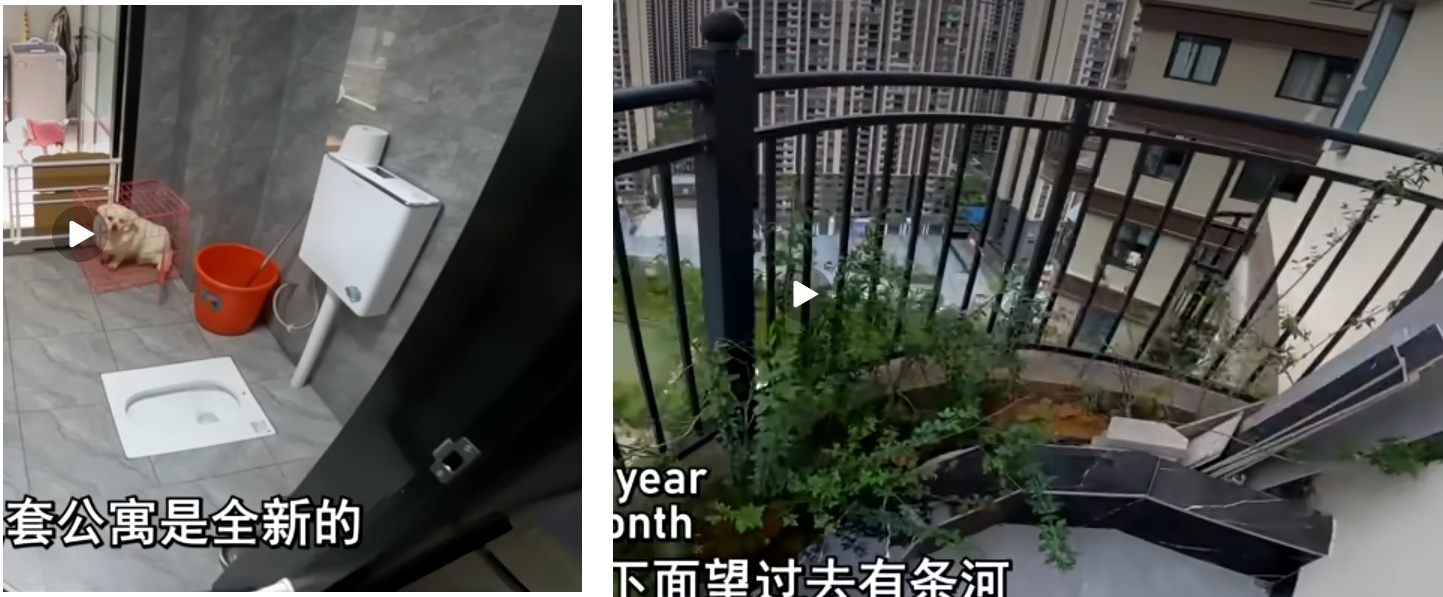 random broken building materials on the balcony and you shit in a hole in the floor. it's shit tier.
