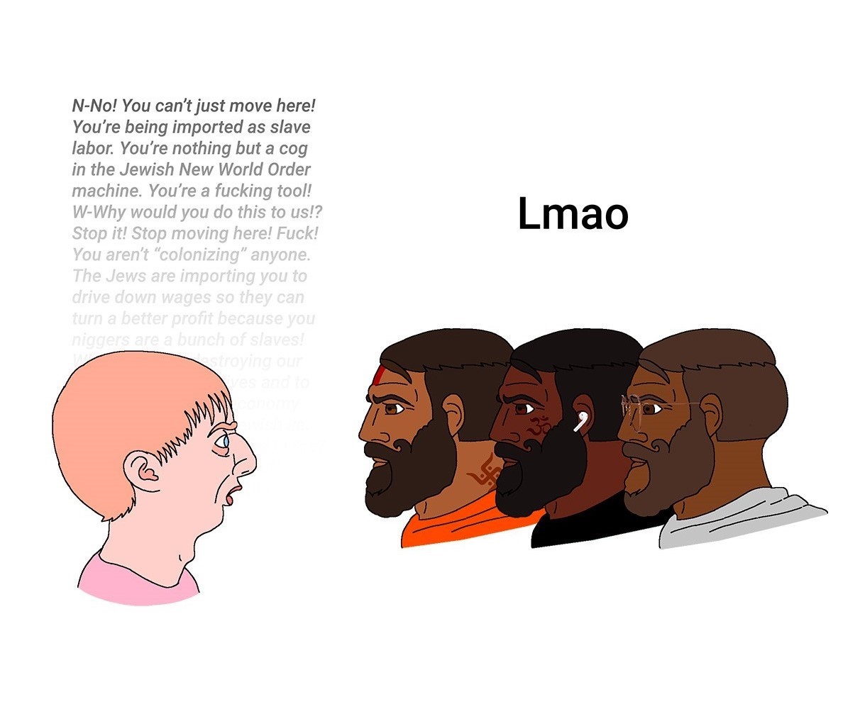 Damn jamnigger whites got you BTFO for hours on end huh? Not good for your blood pressure and mental coming here bud