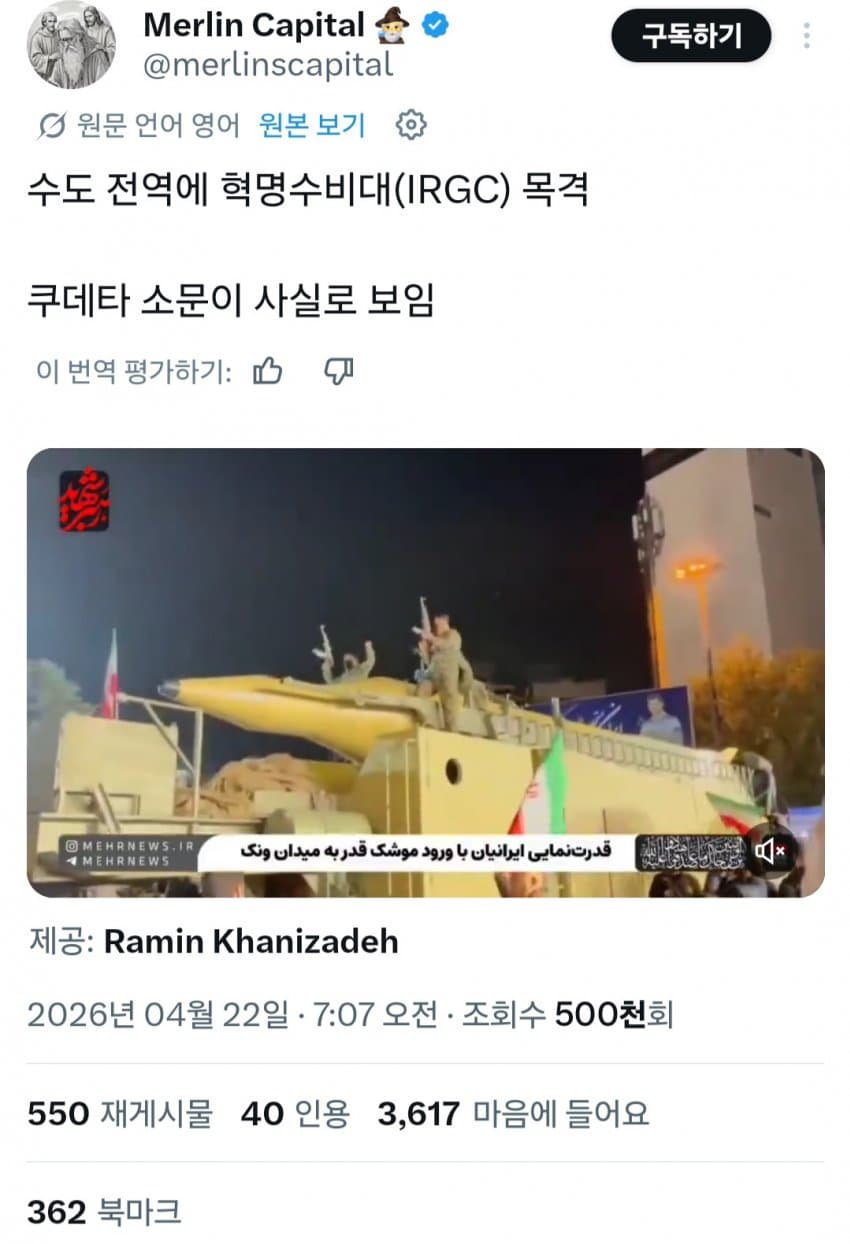 >>533621051>Armed IRGC Sighted Across Tehran>Coup ConfirmedHere is the translation