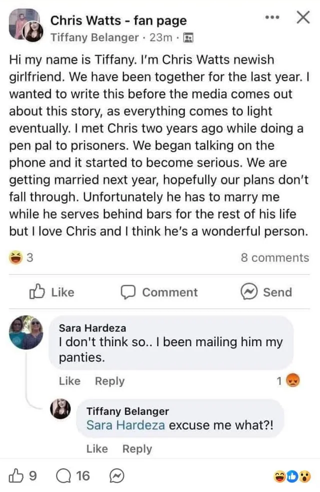 >>533622617>https://www.reddit.com/r/WattsFree4All/Holy fuck, how does this subreddit exist? Those fuckers are literally attempting to justify Chris Watts killing his entire family.