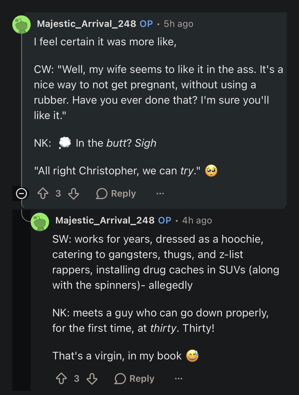>>533630628She was your typical materialistic money-hungry nag wife who used him as a prop in her MLM scam videos, likely under threat. His whole married life was being a slave to her childish whims