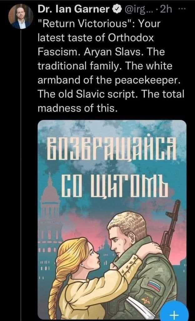 >>533622892Hes a polish canadian hick lib associate professor so he thinks that if russia makes based posters without diversity and fags then Ukraine wins
