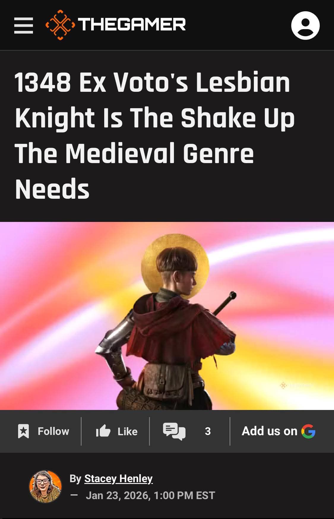 >>533629219>the rag named "the gamer">retarded sjw writes about the game>"no, I didn't play the game, but here's my opinion about it"Every time.