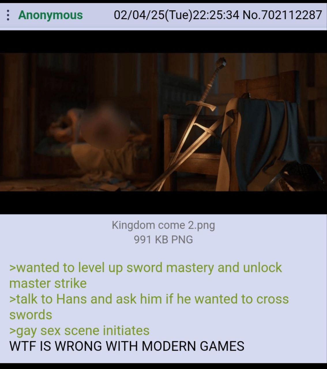 >>533629219>Gets mad when the game is about a man protecting innocent girl>Would be madder if the game was about killing other random men.What the fuck do these people want in a video game? I'm serious. Do they want dilation mini-games? "Press f to attend therapy?" When are they going to realize men love protecting women and shooting/stabbing bad guys. AI cannot put enough of these people on the street.