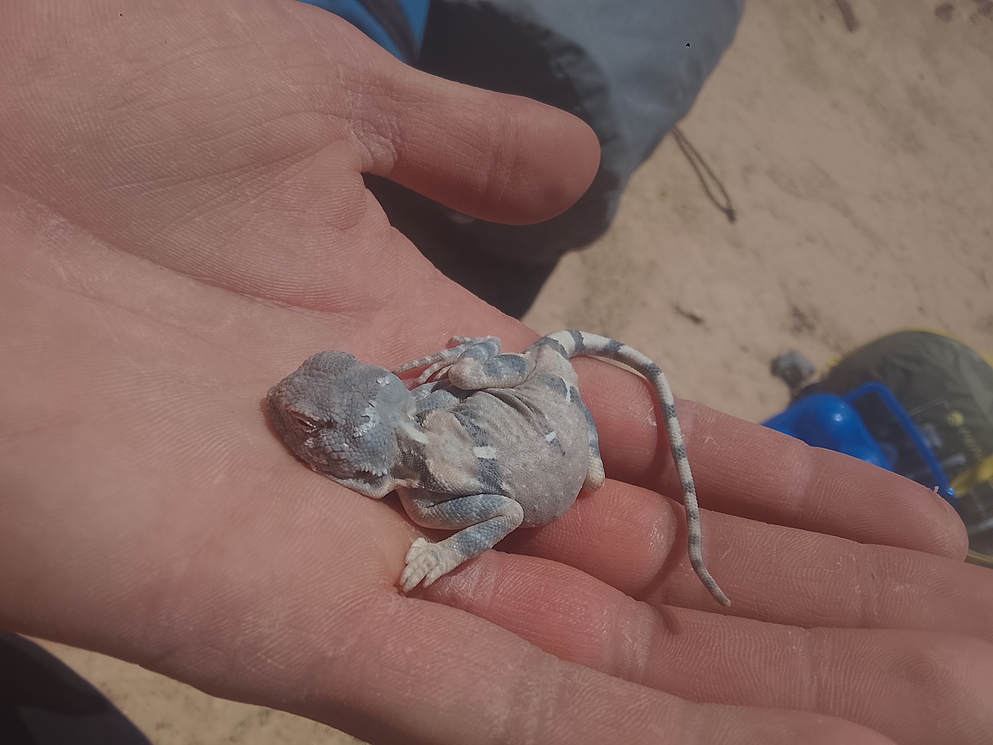 >>533635763Here is the lizard it began to play dead when I caught it, I poured water on it and left it in the shade >>533635785I have two cans of tuna left, I should make town today to buy more food about 7.5 mile away