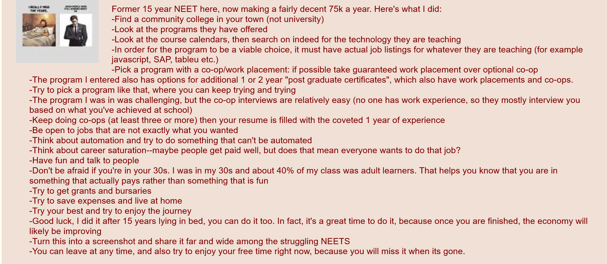 >>533643034>Average American salary is $100k a year yet this board is filled with threads of theirs, crying about cost of living etc.its just mostly neets, they are going through a phase, takes a while to hit bottom and come out of it,
