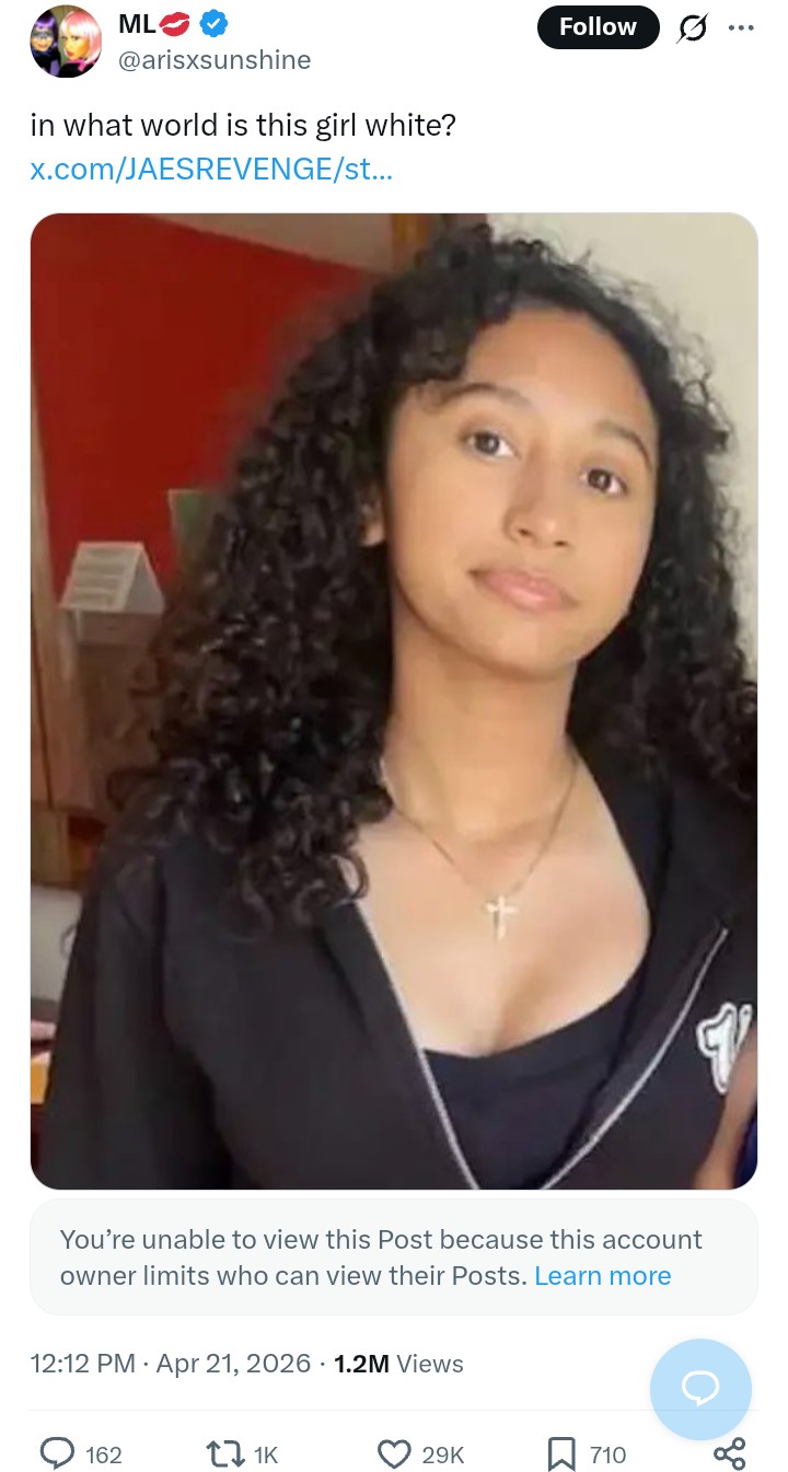 She's not even visible White. I can understand calling a Latino White if they look like they can pass in Europe even if they have some indigenous dna. but she does not.