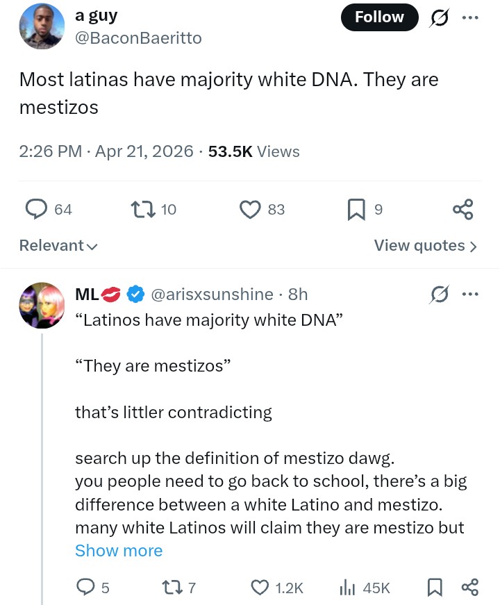 >>533658625>>533658687Someone who is mostly White and slightly Amerindian is called a Castizo.Nick Fuentes is a Castizo.