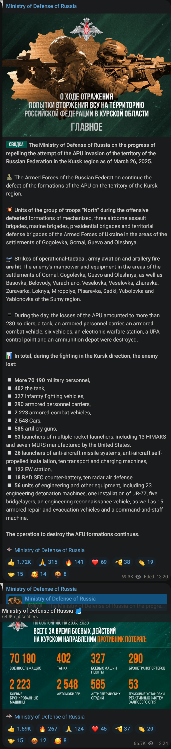 Previous: >>533638018Day 1,519 – Daily assessment: understandingwar.org/analysis/russia-ukraine/#research▶Latest>EU's €90bn loan for Ukraine and the 20th sanctions package against russia provisionally approved; formal procedure to conclude on Thursday, EU presidency says>Ukraine has repaired the damaged section of the Druzhba oil pipeline damaged by russian shelling - Zelenskyy>Smoooking accident at the Tuapse refinery>Smoooking accident at the Fosagro chemical plant in Cherepovets>Szijjártó (orbán's FM) has barricaded himself with some of his closest colleagues and is shredding documents related to the sanctions on russia and any other evidence of treason>Hungarian PM candidate Magyar talks of 'pragmatic' ties with moscow but clearly sides with Ukraine on war: russia is the aggressor in the war, Ukraine has the right for self determination, Ukraine's territorial integrity must be respected, etc., he is happy with the €90bn Ukraine deal as agreed in December last year (which included an opt-out for Hungary)>Magyar does not support Ukraine's fast-track EU accession but he will do everything in his power to diversify oil and gas sources and routes for Hungary (=less reliance on russia)>The kremlin will not congratulate Magyar on his election victory in Hungary; it is an unfriendly country - Peskov>Opposition party TISZA gains 2/3 supermajority in the Hungarian parliamentary election (orbán on suicide watch)>After 16:00 and by day's end, 1,723 russian ceasefire violations were recorded>Ukraine reaches a milestone: making ‘China-free’ drones▶Telegramrentry.org/telosint2023t.me/ukr_pics▶Intelt.me/DeepStateENodin.tradoc.army.mil/WEG (equipment explorer)ukr.warspotting.net (visually confirmed losses)▶Mapsdeepstatemap.live/enliveuamap.com/en▶DISPOSABLE SOLDIER (diary of a RU mobik)TOURS 1-4: files.catbox.moe/mpcw7p.zip▶12 min of TZD in one ditch (Pokrovsk area) - 28 killedfiles.catbox.moe/sxbxfb.mp4