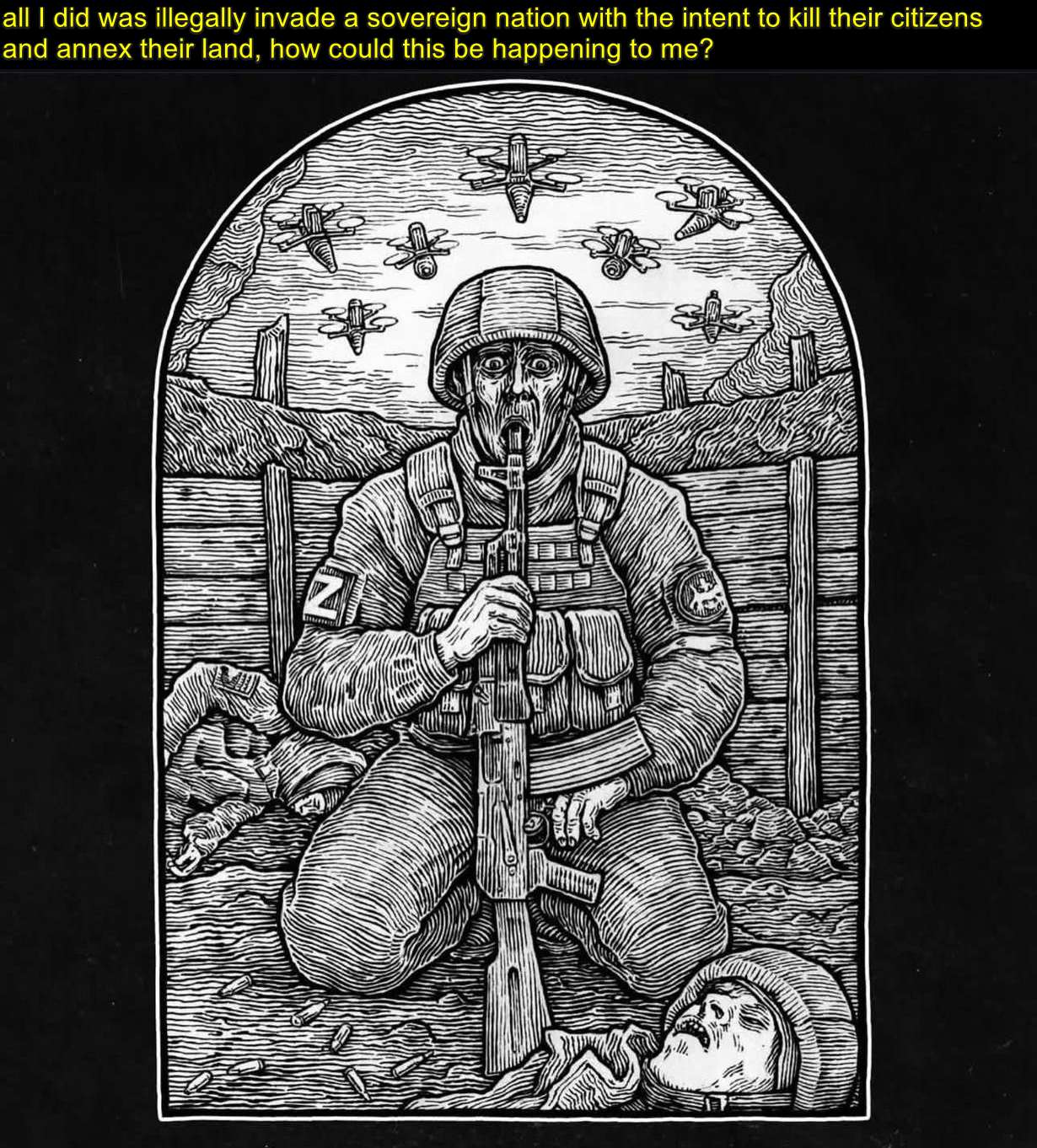 >>533661606this war was started unilaterally by Russia, blood is on the hands of all Russians not just the kosher ones